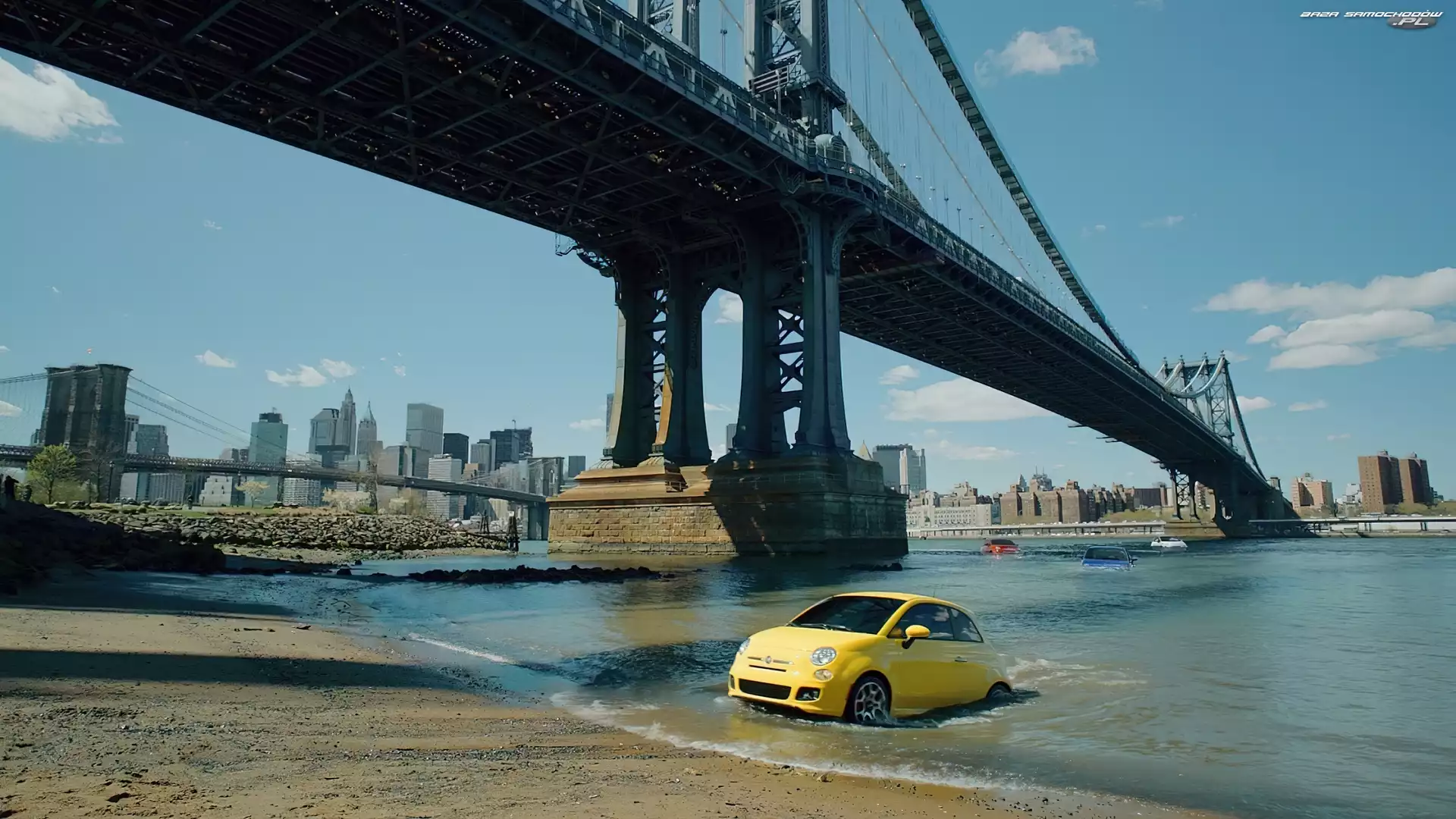 Samochód: Woda, Most, Fiat 500, Panorama, Miasta